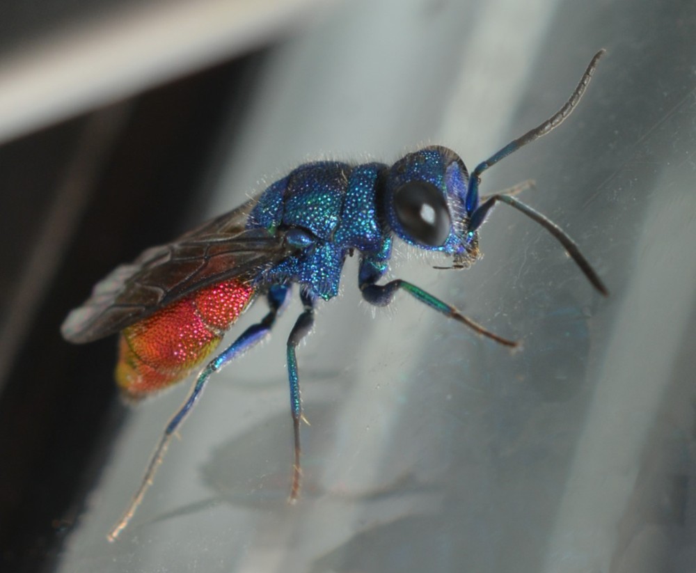 its a female Chrysis sp. in the ignita-complex, looks a lot like C. corusca, but could potentially be C. solida as well although the long T3 fits decidedly better with the former