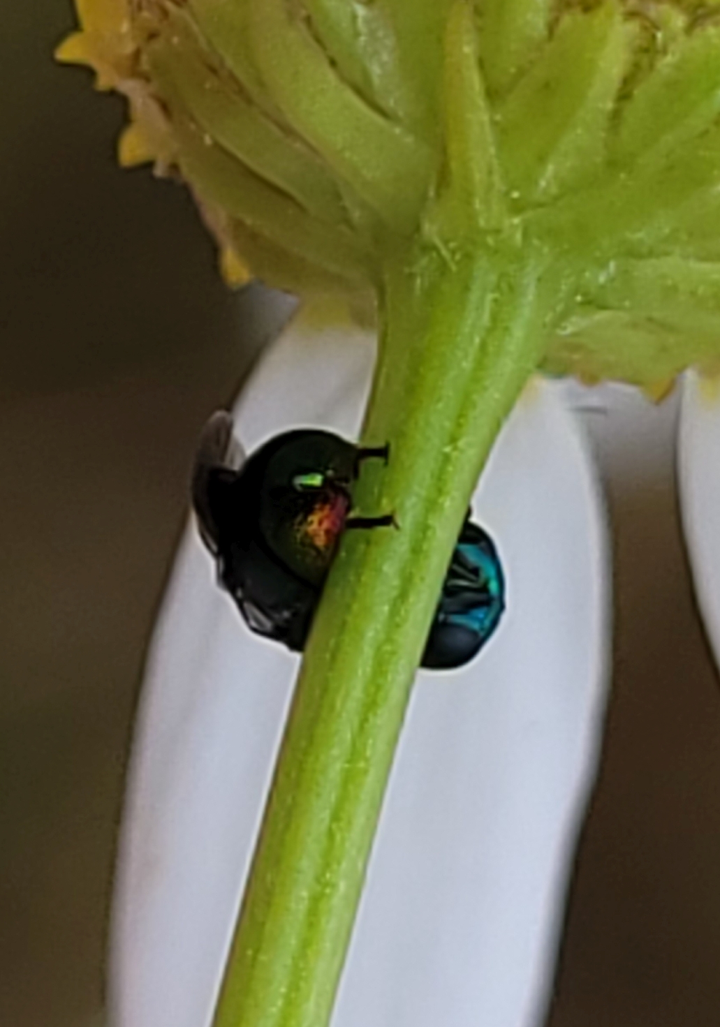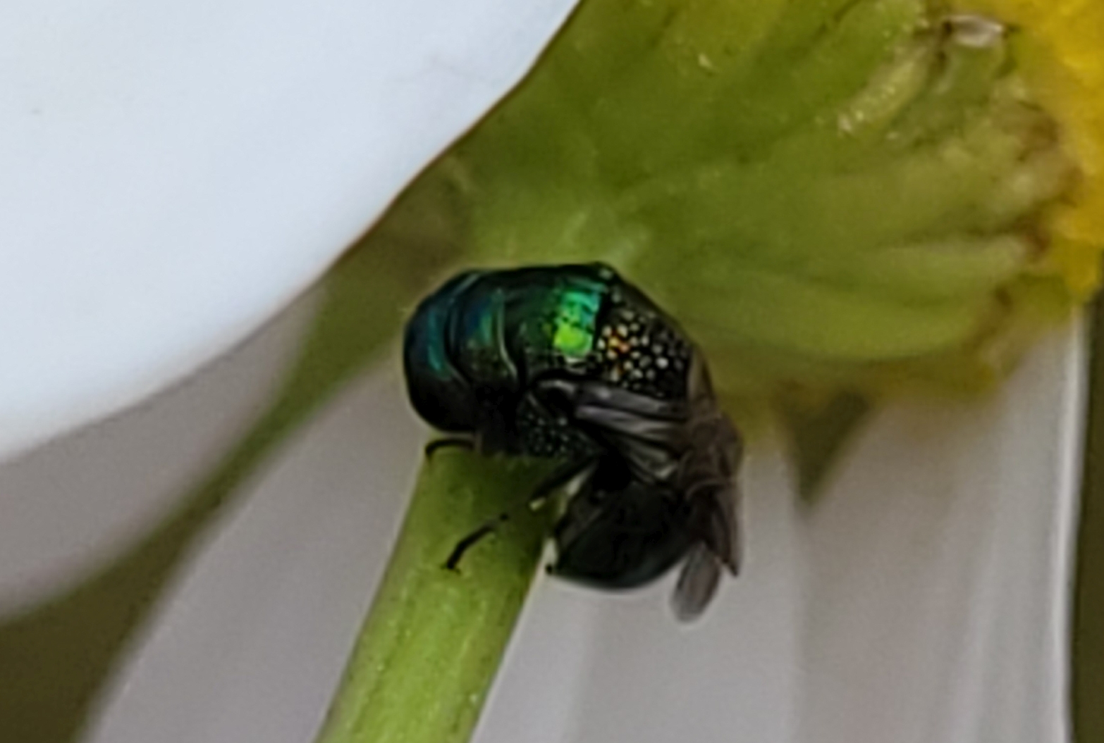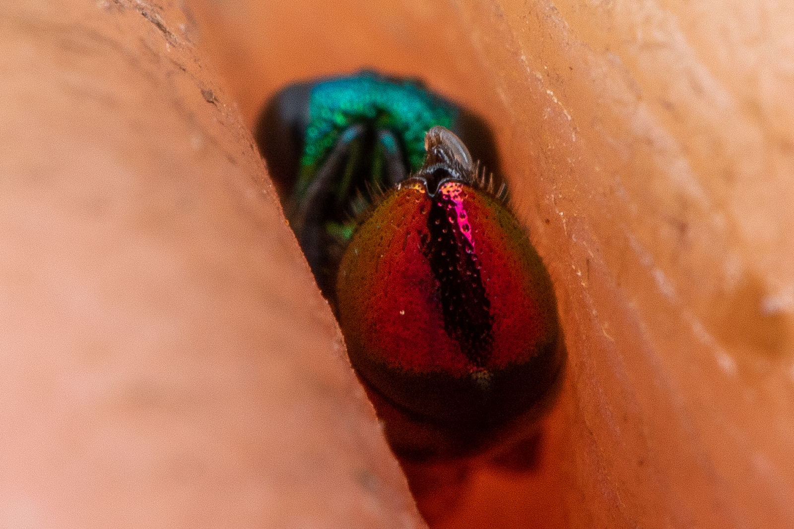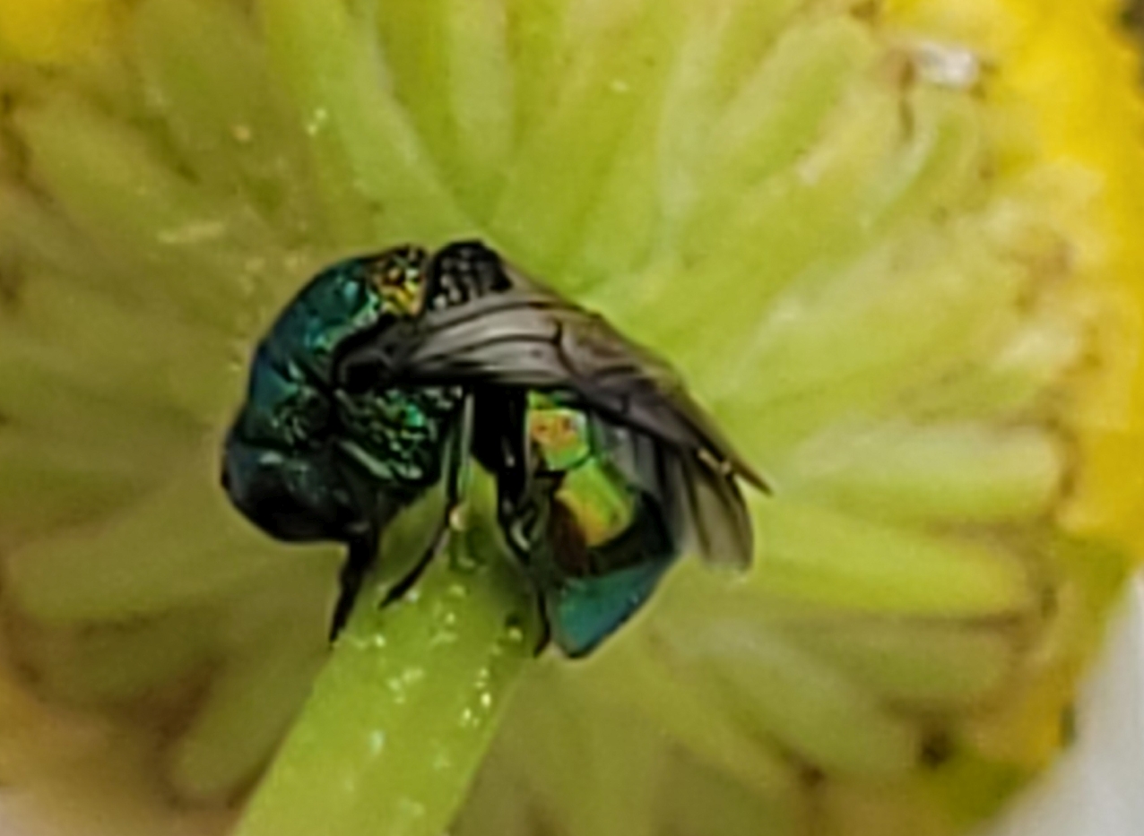 The chrysidid was found in an old orchard on the leaves of a plum tree on 5th May 2024. The body length about 6 mm. I presume that it is a Pseudomalus sp. (P. auratus?, P. triangulifer?). Could anyone help with the ID? Thanks!