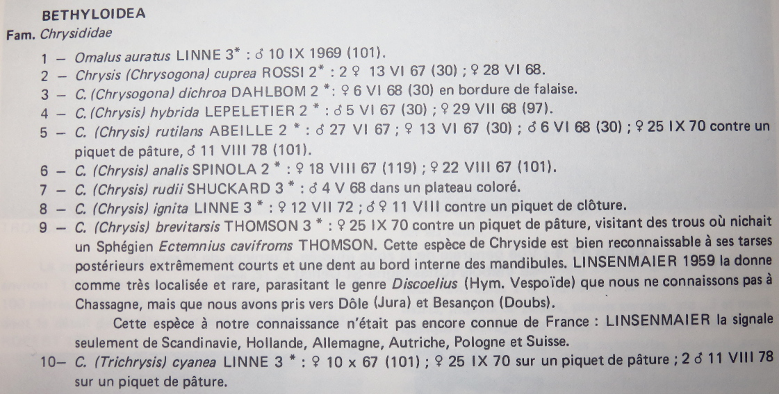 One of the first biblio with a list of Chrysididae of my region :)