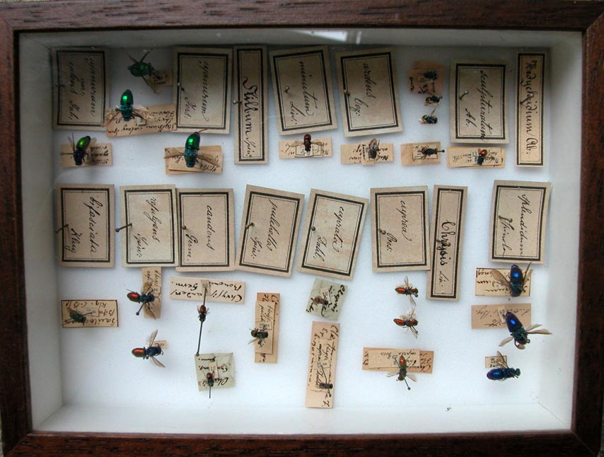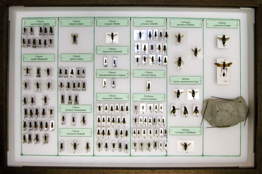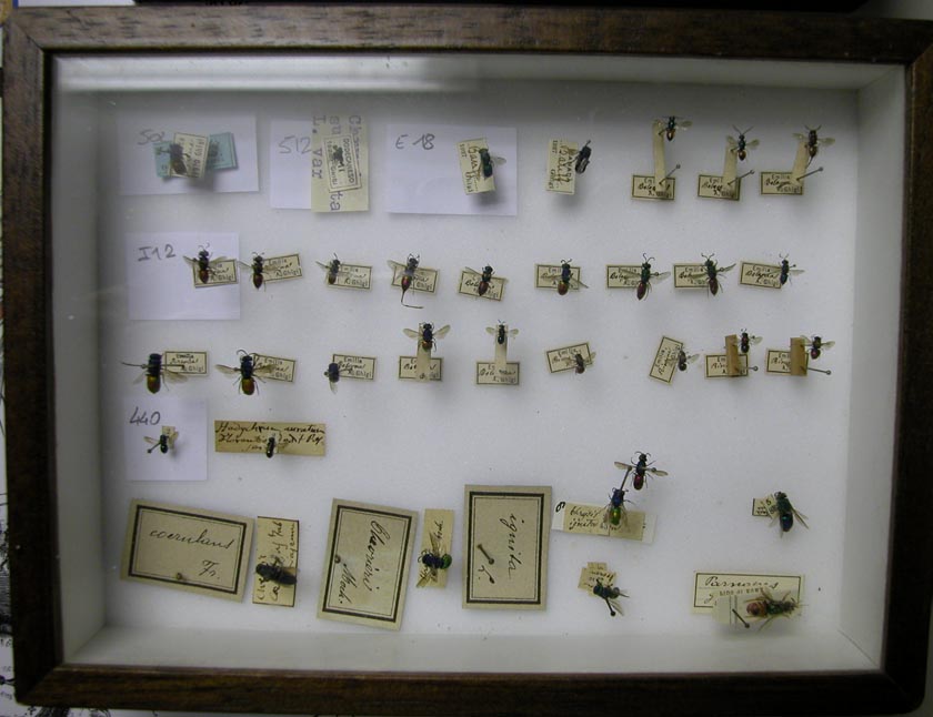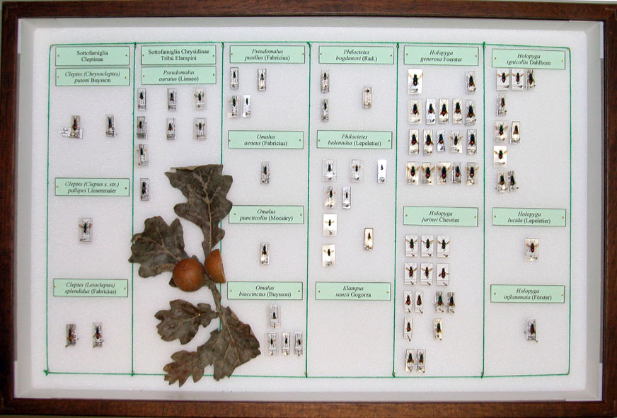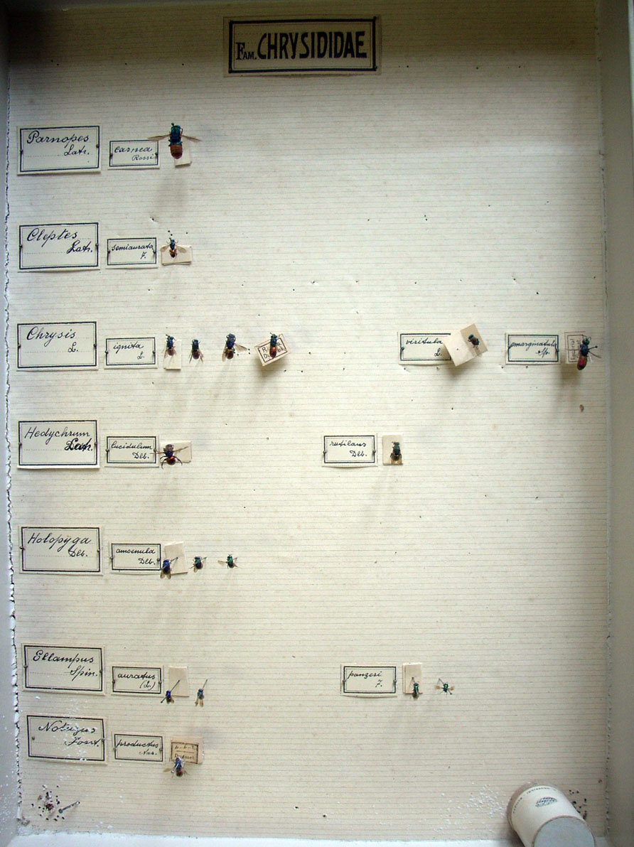 The Museum houses a small Chrysidid Collection with around 600 specimens, of which 400 identified and conserved in 7 standard entomological boxes. The Collection was studied and organized by Fabio Invrea and therefore requires a modern reorganization. There are some interesting specimens collected in Latium.