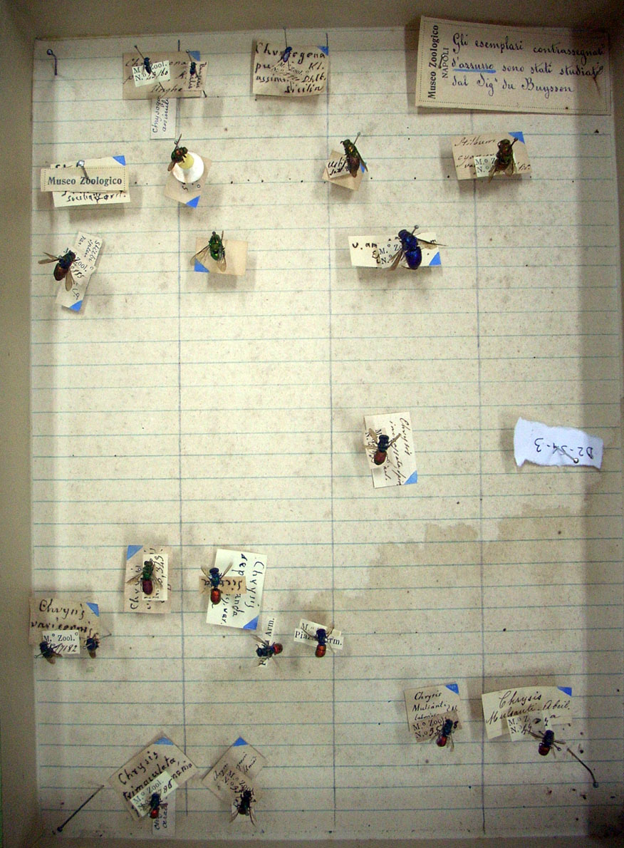 The museum is famous for hosting the legendary Collection of Costa father and son. This Collection is rather small and it was entirely studied by du Buysson. A. Costa described 6 species of Chrysidids, one for Sardinia and the others from various Countries around the World. Unfortunately I have not been able to find any type. It 'possible that the types are lost after the examination of du Buysson or during their expedition in the past time. The types have not been found even at the Museum of Paris, where I searched for them during my first visit. Fortunately, thanks to du Buysson, we know that the type of Chrysis laborans Costa, 1865, one of the most common African species, corresponds to the type of Chrysis heros Buysson, 1891, according to what was stated by the same French entomologist.