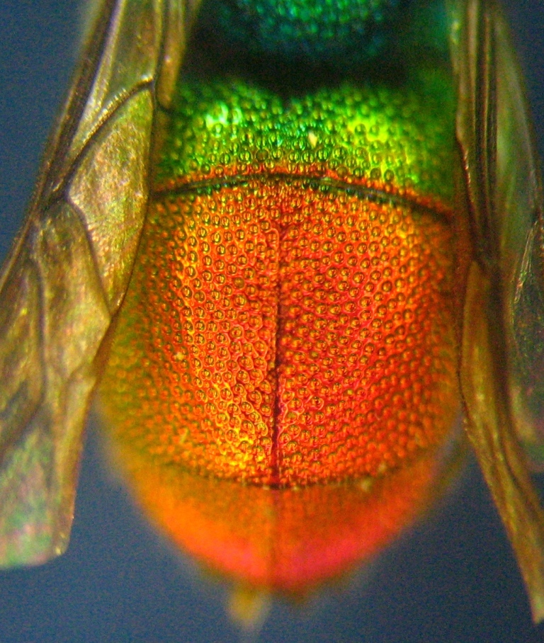 Chrysis placida because males are always very easy to ID, because of the colour on the first tergite: it's like in the female of