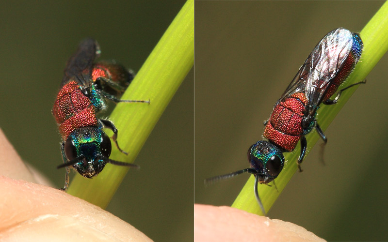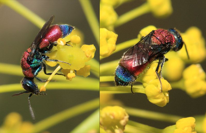 it looks like the female of Chrysis sehestedti gogorzae, but there are other similar species around Madrid (in Mingo 1994 is under the wrong name: Chrysis magnitudina Linsenmaier: Linsenmaier himself placed magnitudina in synonym of gogorzae).