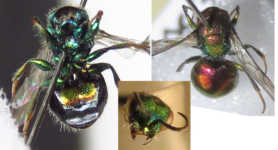 sternite 2 with a broad golden metallic mark, head, thorax & abdomen with long whitish hairs.