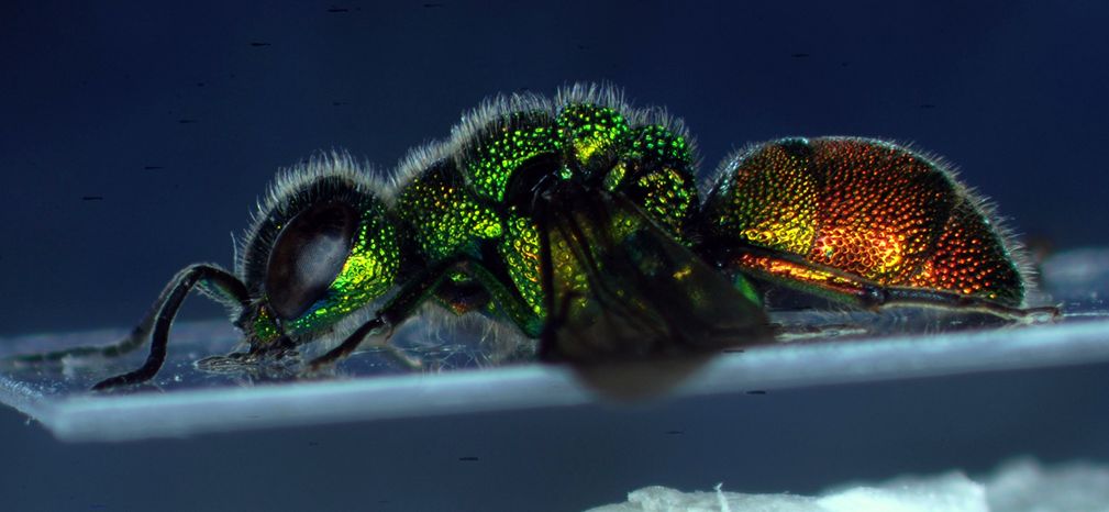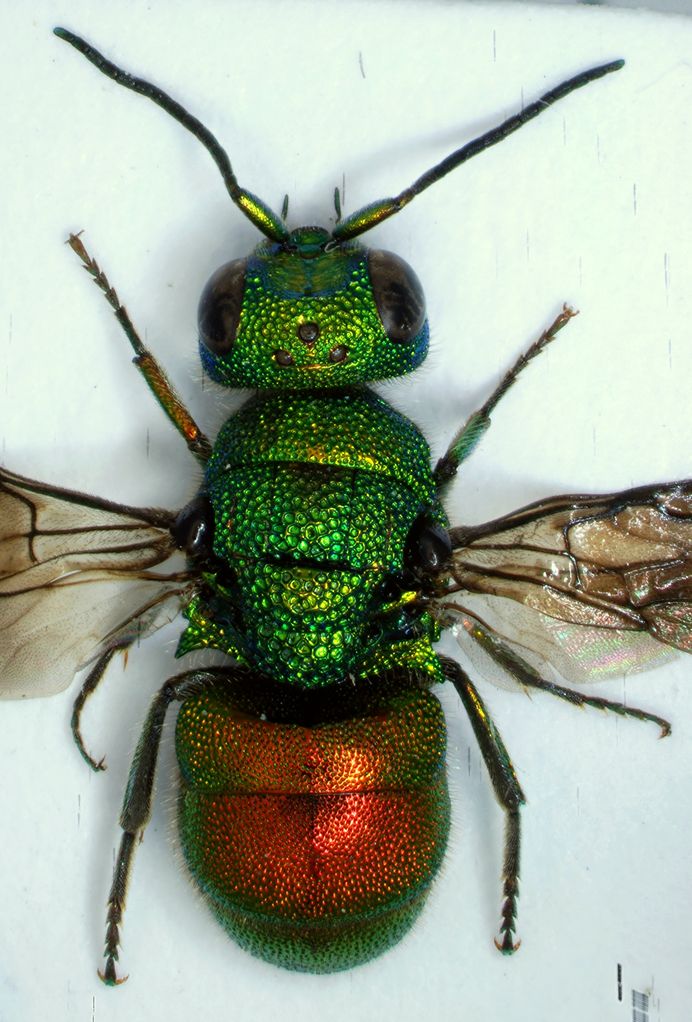 Un consiglio di preparazione: cerca di preparare tutti i crisidi con cartellini trasparenti (la mia scelta) oppure spillandoli con microspilli, in modo che puoi sempre controllare gli sterniti. Nelle Holopyga è spesso fondamentale controllare la punteggiatura sul secondo sternite, mentre nei Chrysis la forma delle macchie nere del secondo sternite.