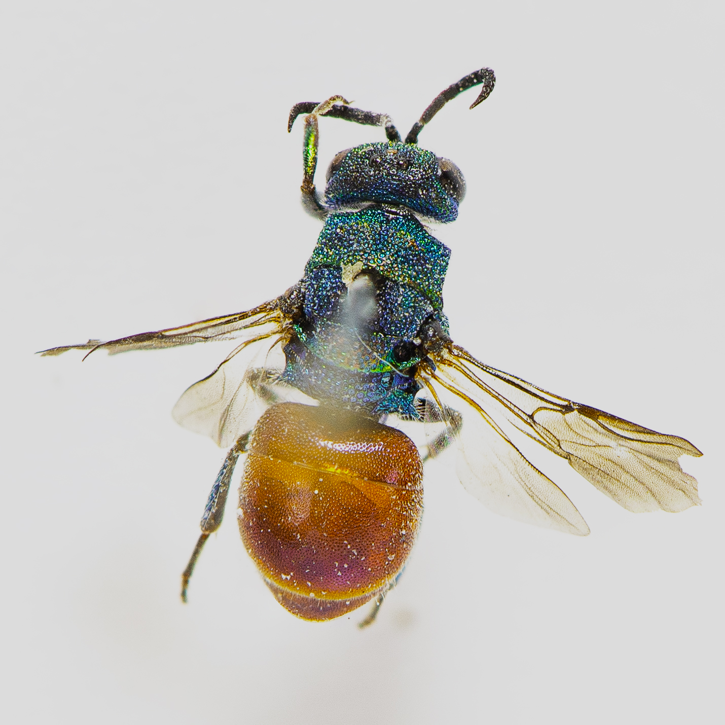 Hi everyone! I've caught these two specimen in the garden of my university (in Milan, Italy) on 29.06.21. I think they could be male and female of Hedychrum nobile, someone can confirm my ID?