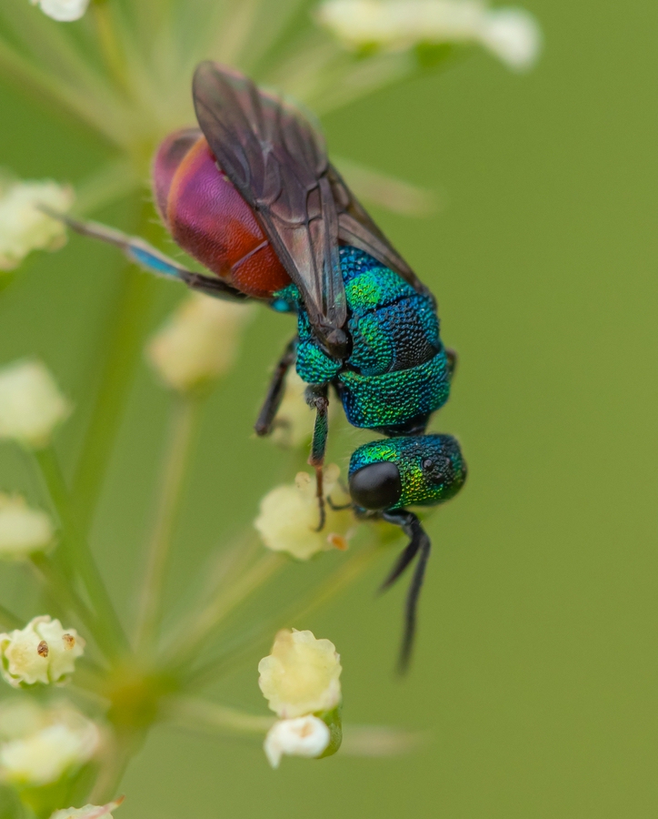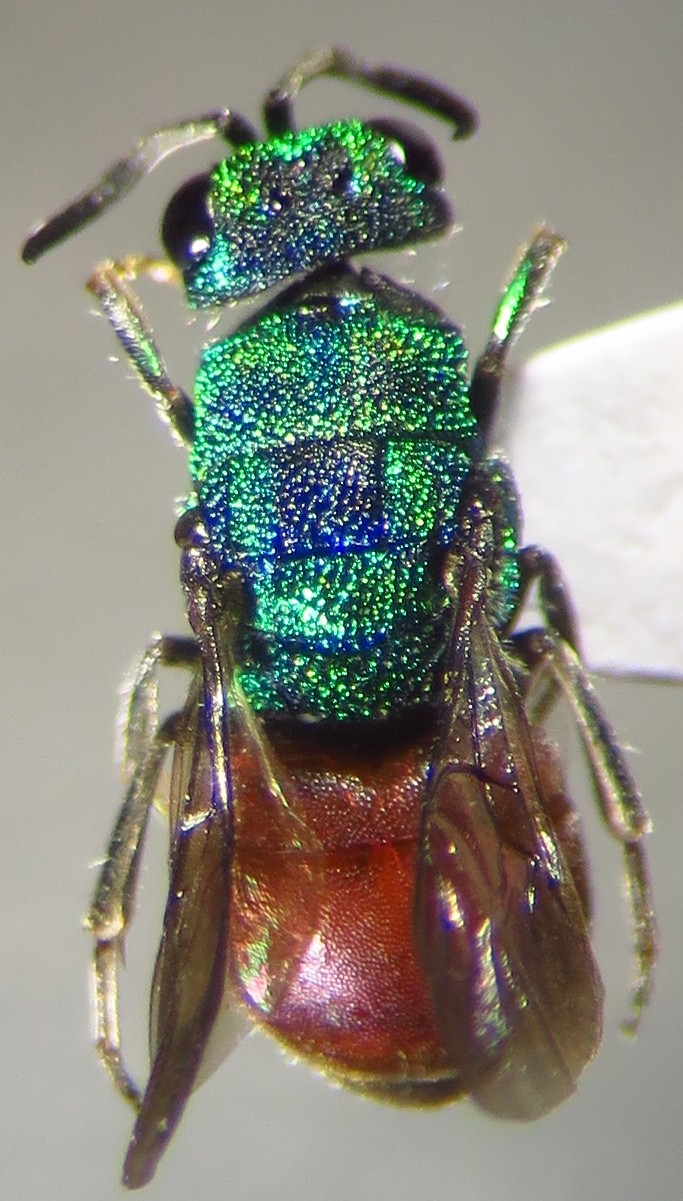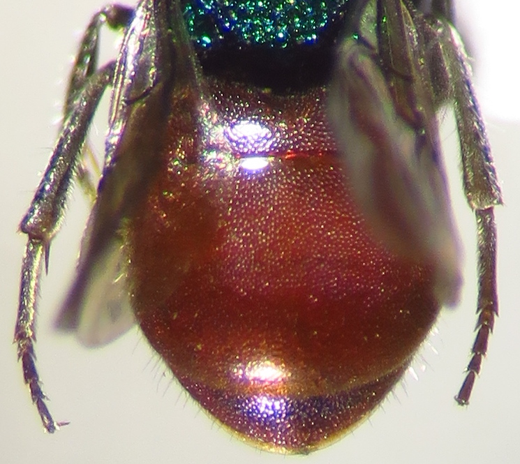Your Hedychridium has red metallic abdomen, but mine has metallic reflects only slightly developped on T III. But my material for photos is a simple compact.