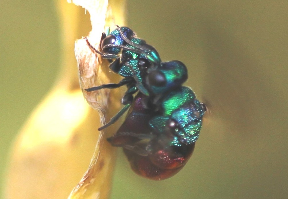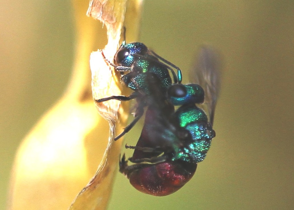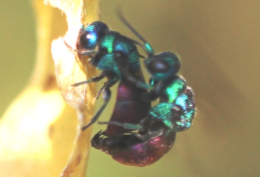 Superfantastique!!! It's the first time in 20 years that I see similar pictures. The observation of the mating behaviour of the Chrysidid wasps is very very very rare! and you even took some pictures! Lucky entomologist/fotographer! We can see the male genitalia outside, ready for the copula.