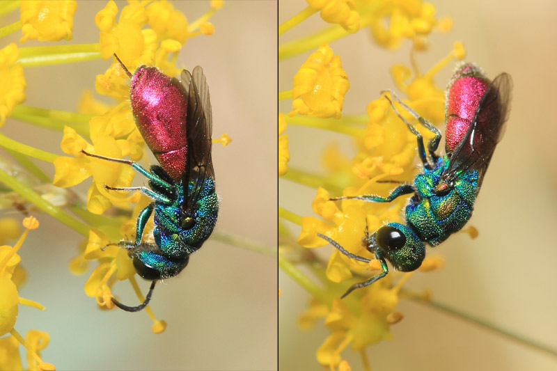 Could it be Chrysura varicornis? I am not quite sure neither of the genus, but in the third photo, the smaller at least I think yes it is.