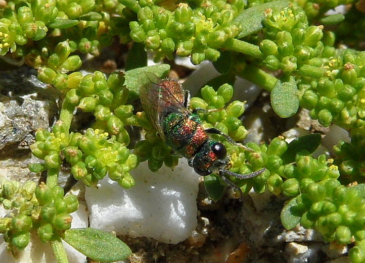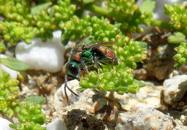 That's a good question. There were a lot of Chrysididae active, very fast (:-( but in my memory it was the same but more shade. Very fond of the nectar of the very tiny flowers.