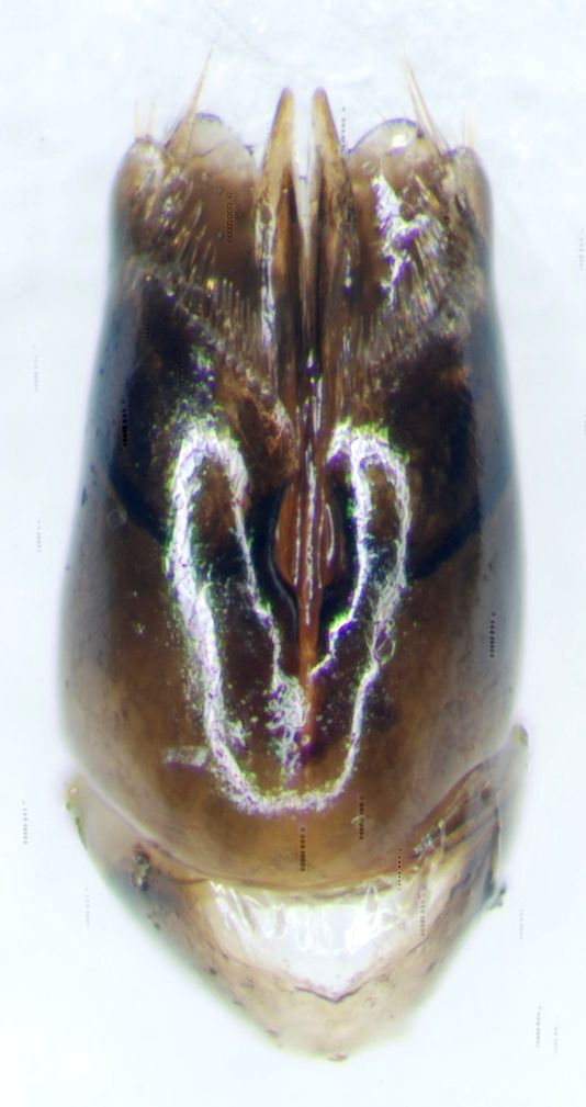La femmina ha i denti del margine anale corti e molto separati tra di loro, soprattutto i due centrali.