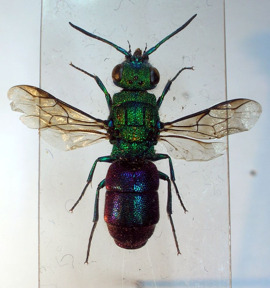 Si tratta di un esemplare tunisino ricevuto in dono da un caro amico :birra: ; viste le grosse dimensioni credevo di poter giungere facilmente ad una identificazione, quanto meno andando per esclusione, basandomi sulla pubblicazione dei Crisidi del Nord Africa (Linsenmaier 1999). Purtroppo non sono riuscito nell'impresa visto che l'unica Chrysura riportata nella pubblicazione che arriva ai 13 mm è la C. refulgens ma l'habitus in generale, il profilo del metanoto in particolare, sono ben diversi.....