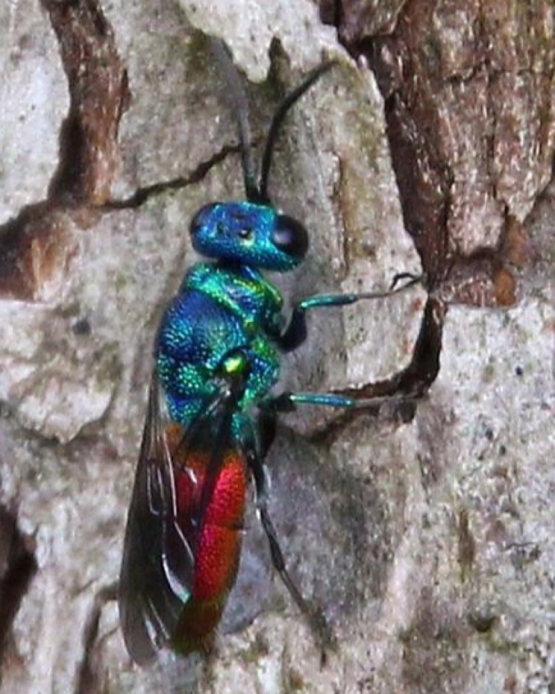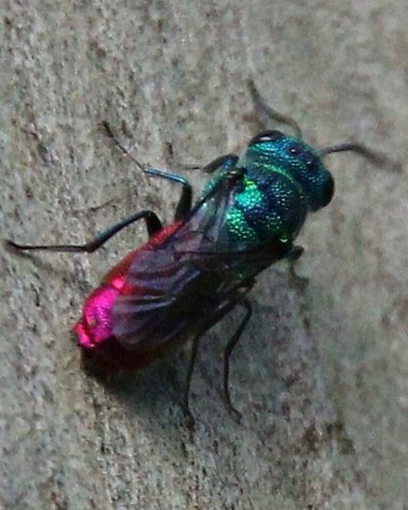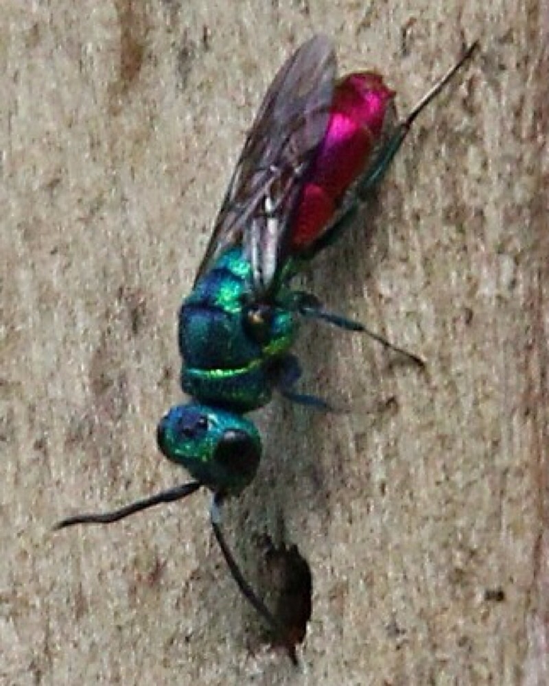 Just thinking. Would it be that this chrysis is parasitic on Ancistrocerus parietinus? Cause that was the bee nest it was searching on. And Would this info help on a determination?