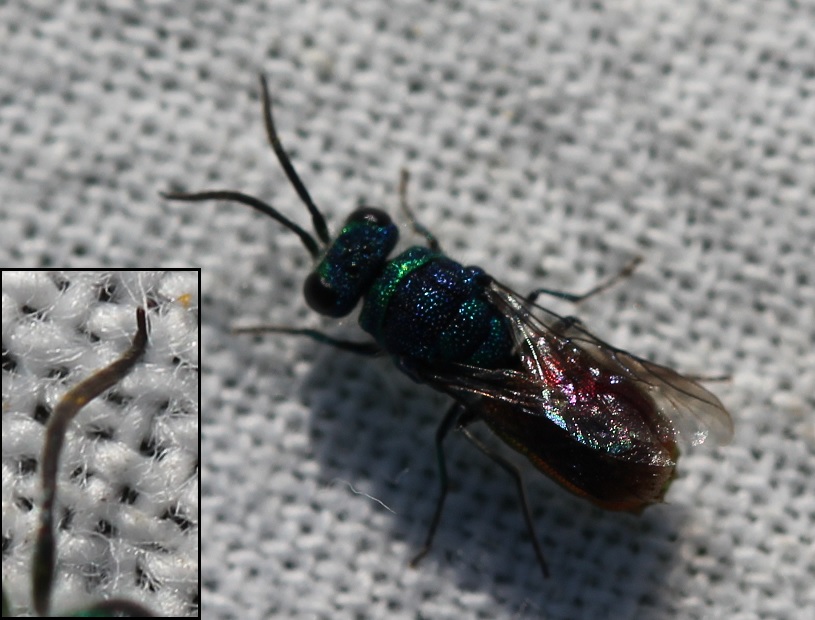 Last saturday I found this Chrysididae in Gulstav Mose, Denmark. I have no idea if this picture offers the detailes, which is needed for identification, but I was only able to shoot twice before it disappeared. i might be able to zoom in on some particular spots, though.