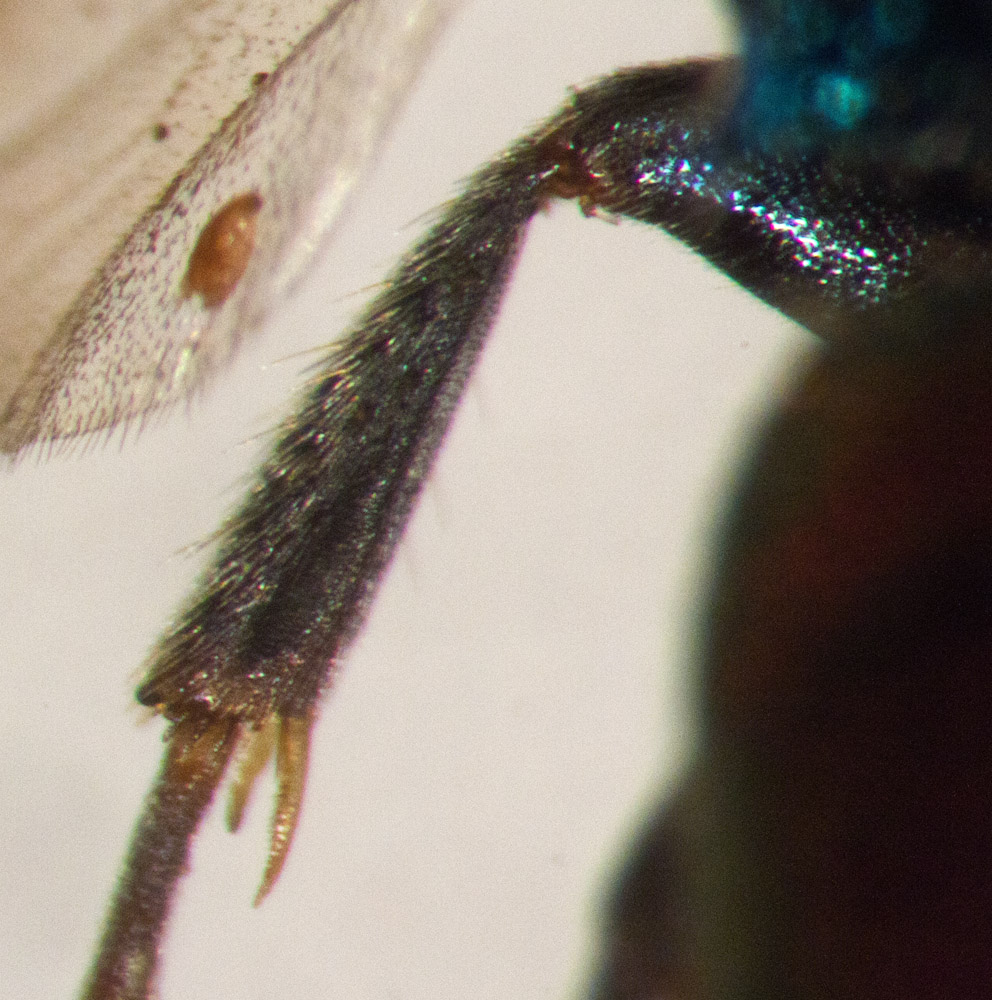 here is a photo of mid-tibiae and last tergite, hope this will help (sorry, not good photos... just shot through binocular).