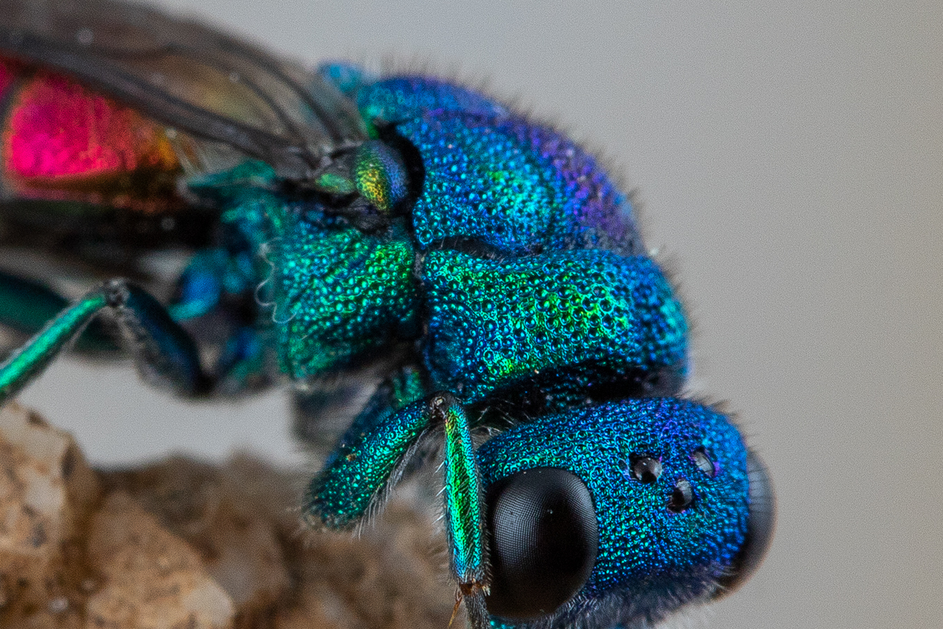 My guess is Chrysura trimaculata for this one that I found near Montpellier, S. France : (metascutellum seems elevated and very dense punctation...). Or could it be C. dichroa ?