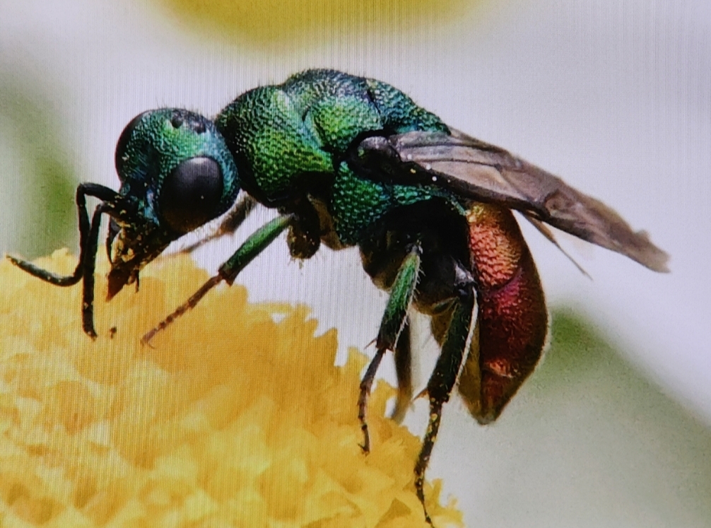 Have you considered a male of Hedychrum niemelai or nobile? Hedychridium roseum has a distinctive non-metallic appearance of the abdomen but yours looks quite shiny/metallic. But wait for an expert to reply. I’m only just beginning to learn a few of these and could very easily be wrong!