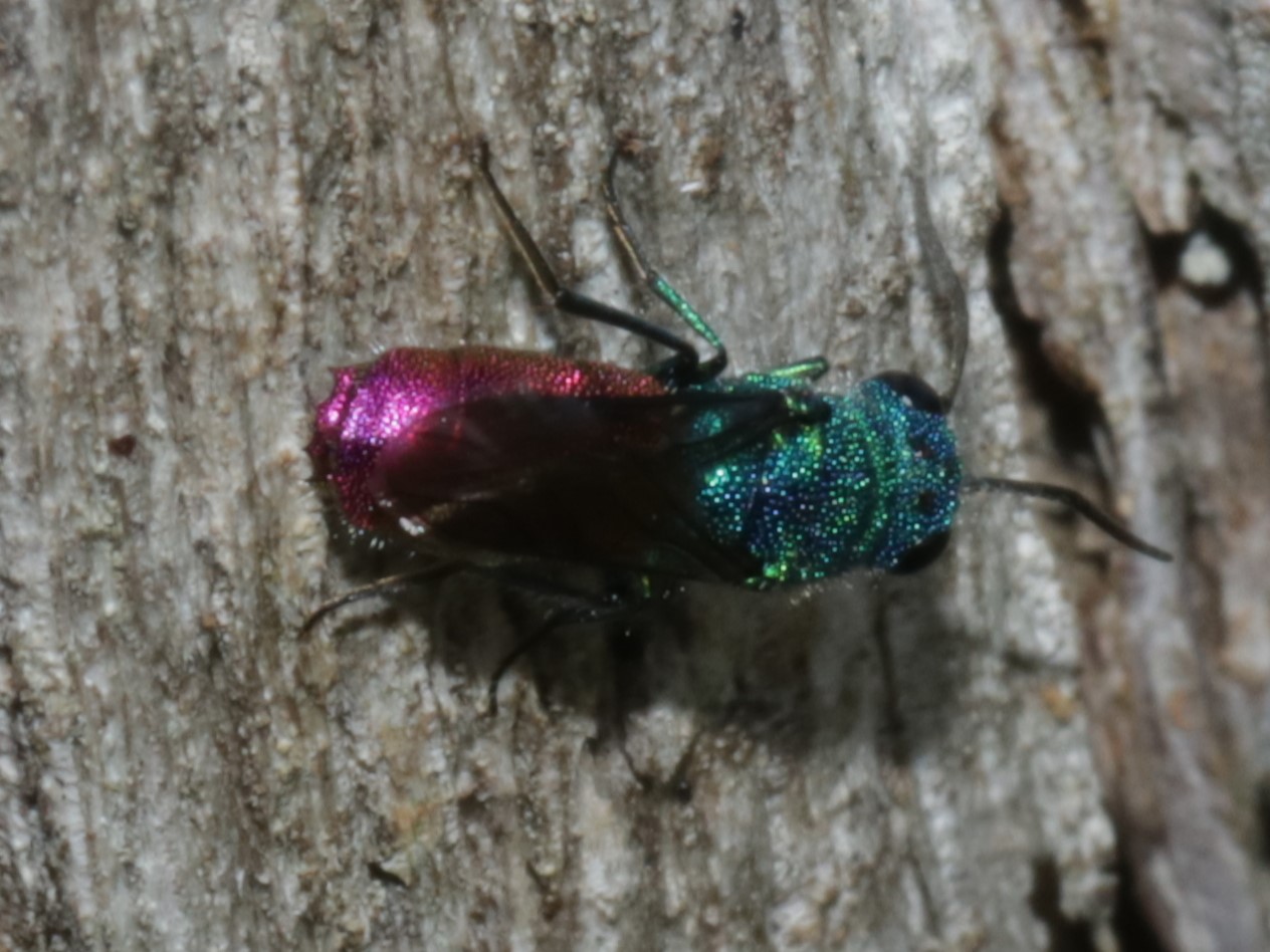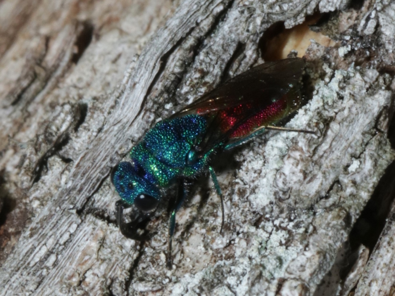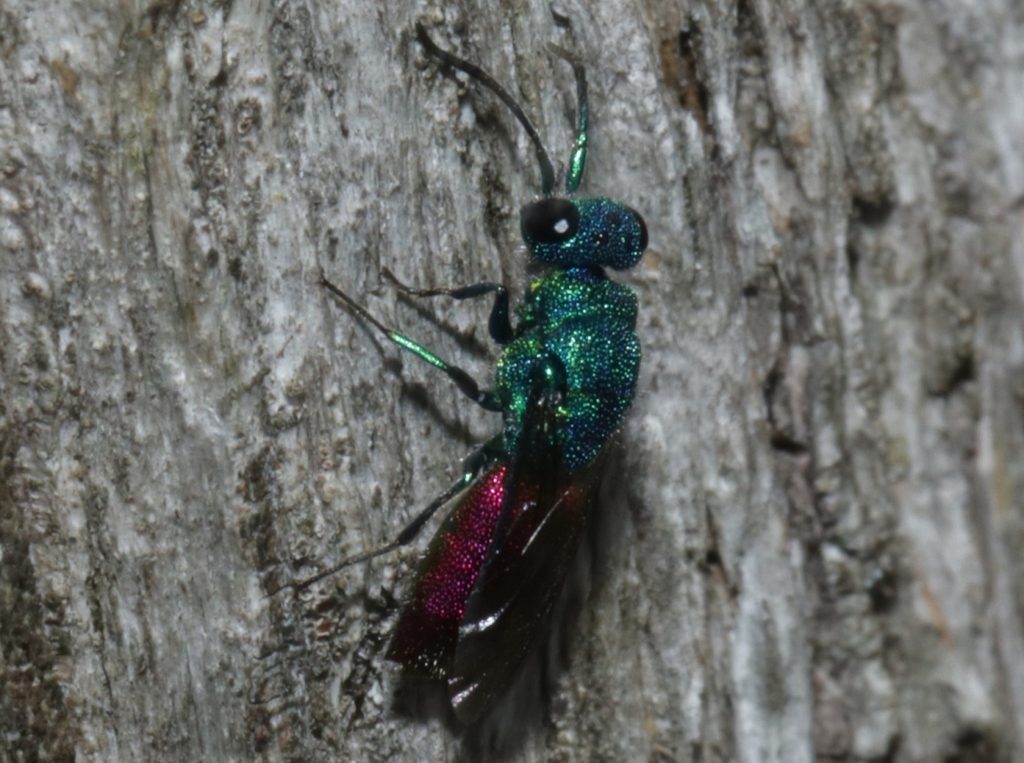 I saw this Chrysis 12-11-2022, rather late in the year. Location The Netherlands, southern part. Checking a wooden pole.
