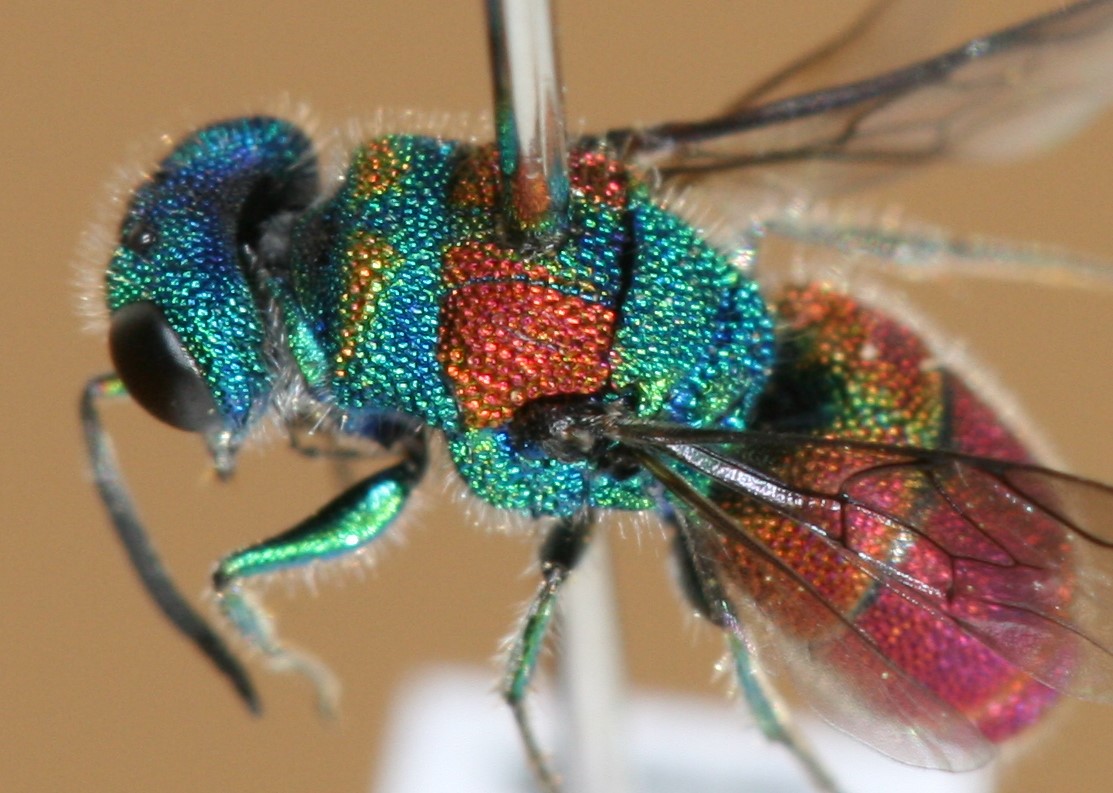 Dorso-lateral view. Note the intricate arrangement of red & blue on the thorax.