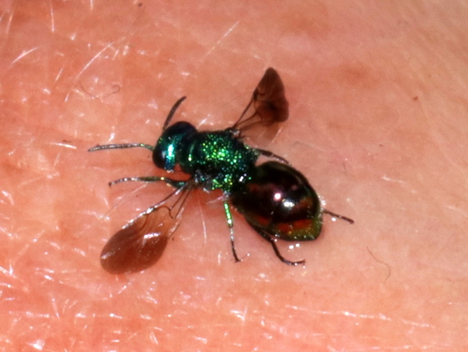 I rescued this chrysis from my birdbath. I think it is a Pseudomalus auratus. Am I correct?