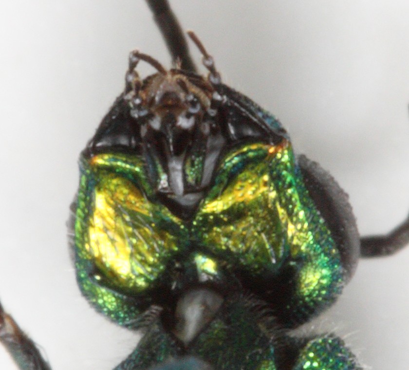 This is visible for the transverse frontal carina and the shortened malar spaces.