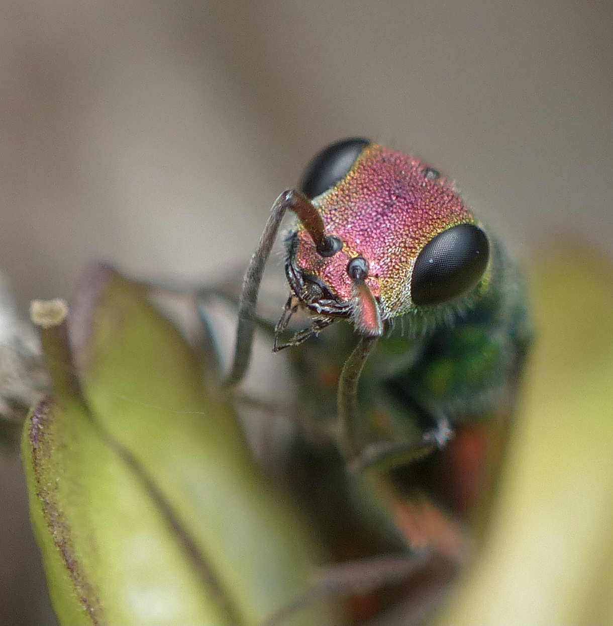 While sorting out photos from 2019 I found some of a small chrysidid found at about 1000m on Monte Menegosa, Val d’Arda, in the N Apennines. It was seen on a small plant at the edge of a sandy slope with nesting bees and wasps. Some other species from the same site were identified on this forum last year, but the photos of this species are mostly a bit out of focus so I didn’t post them before. But I am now wondering if there is a chance of naming this one? Thanks for any feedback!