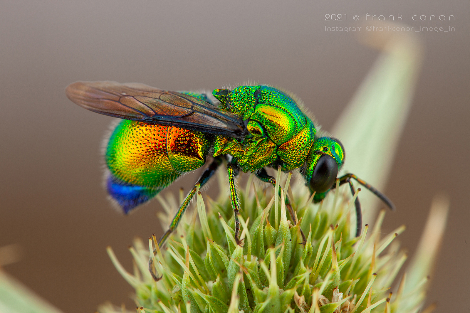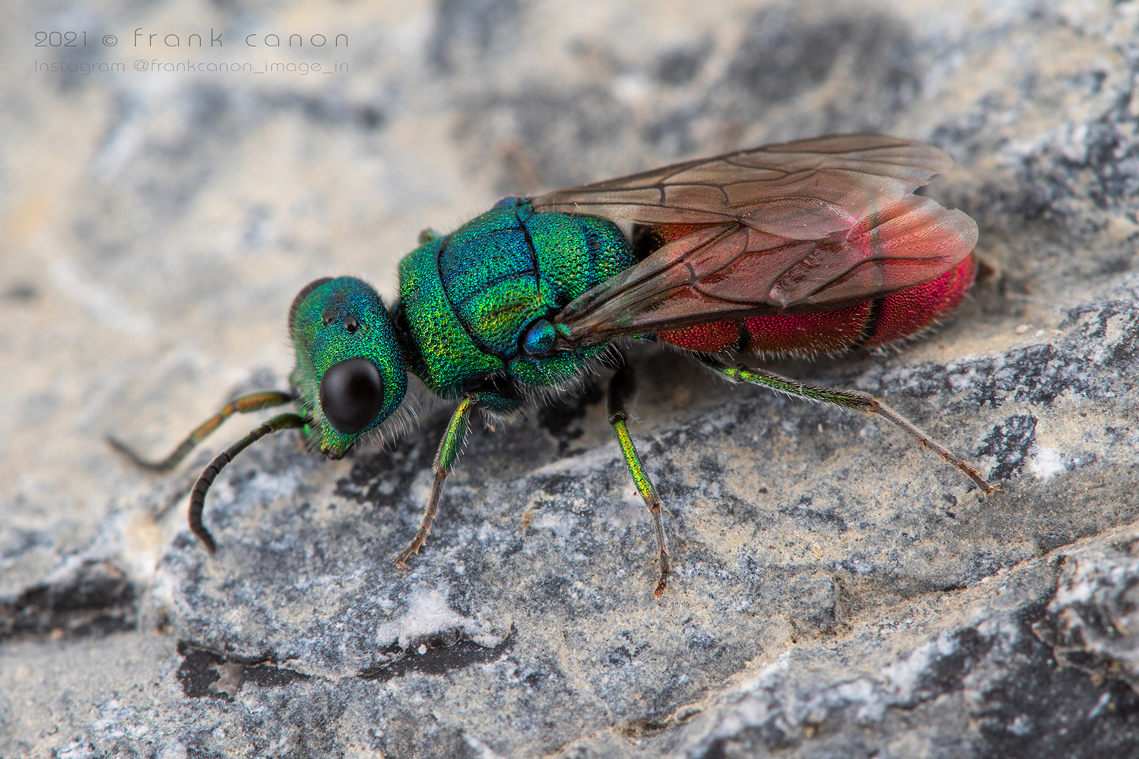 Here is another wasp from the same area, tiny one, I think it could be Chrysis cortii, but not 100% sure...