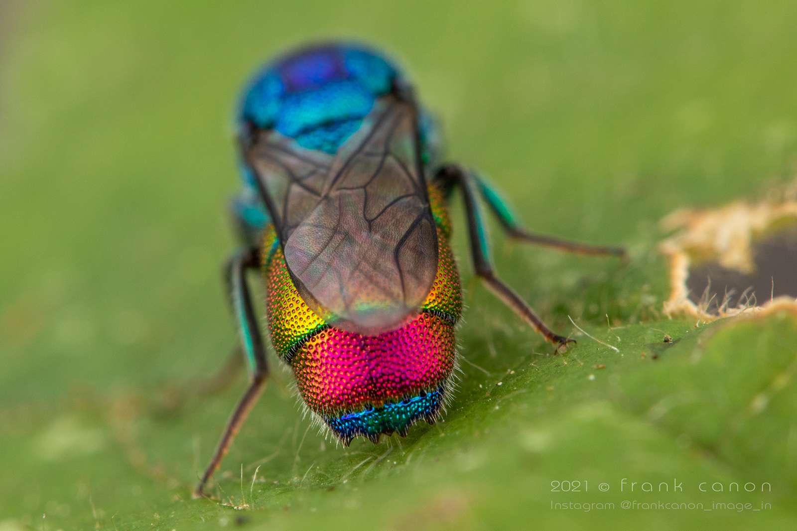 Again same location, big size, from the large head I would say Chrysura austriaca (?)